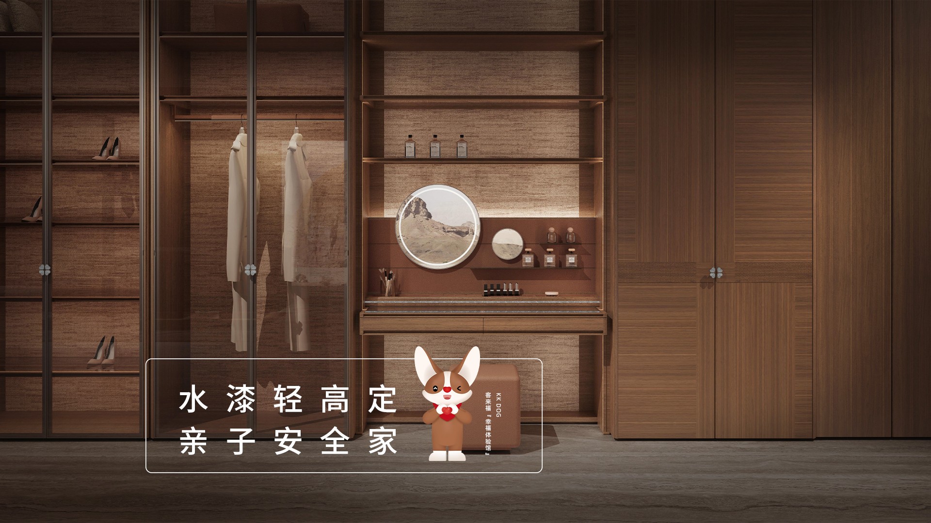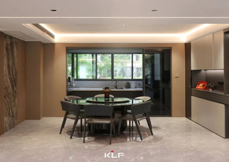 以紫棠主色调,用浓郁的色彩表达多元化的情绪;多层板的运用,以稳固性、性价比打造环保时尚的家居空间;圆弧、罗马柱、创IP元素K纹雕刻门板等设计运用,让空间颇富有特色;烤漆与水漆的结合,让环保性、光泽度相互衬托,成就清雅之境。