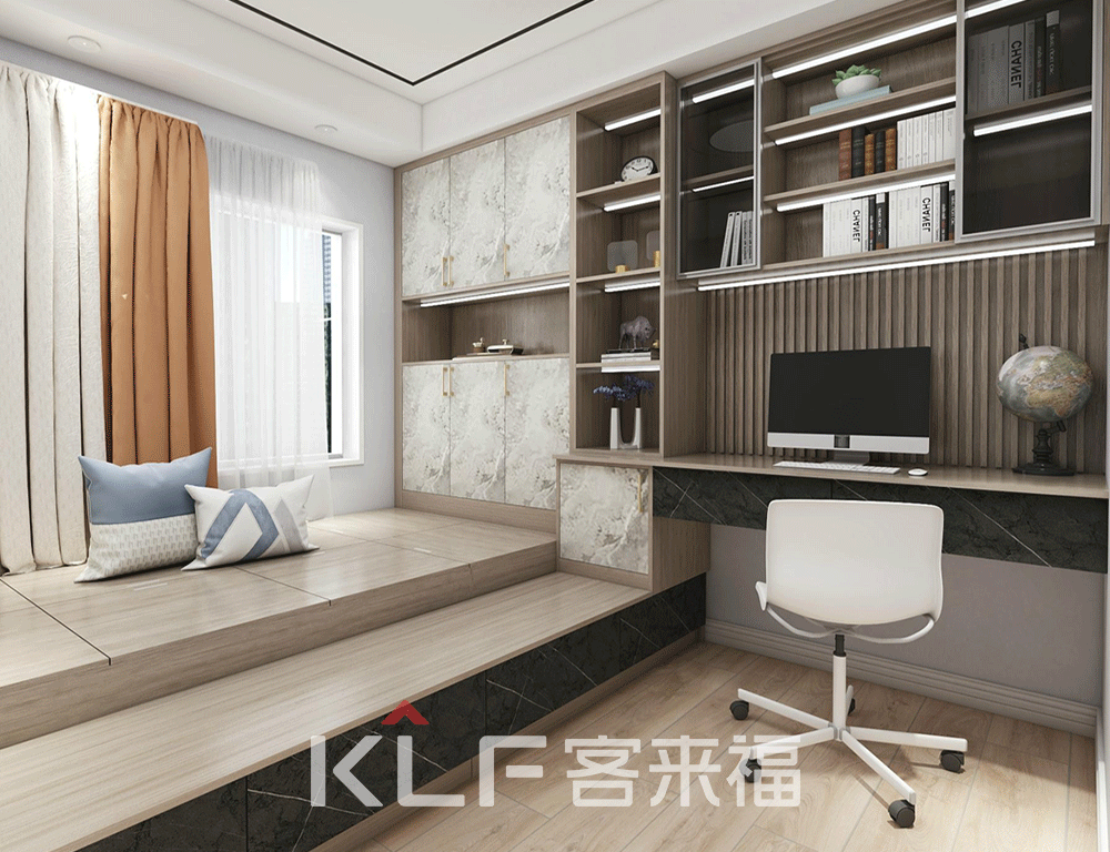 卧室的对面就是书房了,简单的设计,白色基调构造让书房看起来更加的安静,给屋主人带来沉浸式的阅读享受。再走几步看到的就是阳光房了,我们充分考虑了结构安全、防水、遮阳等问题,让其成为建筑的有机组成部分。