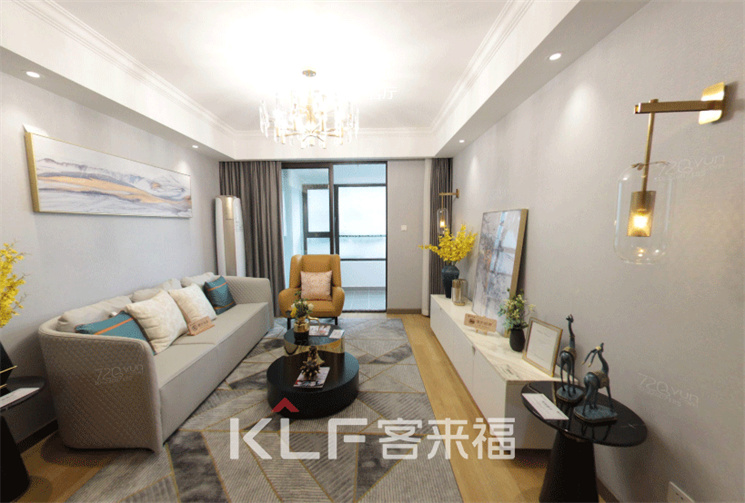 我们在客厅空间的设计上以灰白为基调,采用大张地毯搭配空间,沙发规划出客厅场域,墙面搭配开放式电视柜,窗帘与局部的亮色软装呼应。在明亮顶灯的映衬下,木质地板的暖意慢慢散发,在白色的空间氛围中构建轻柔、舒适,心都安逸下来。