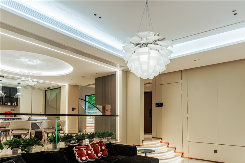 本案是来自合肥--置地·佰悦公馆的别墅私宅。从院外到室内,屋主和设计师都强调通过空间布局实现自然舒适的居家感受,全屋智能家居、智能灯光控制、一体化的空间设计…共创这个自然美好的家。
