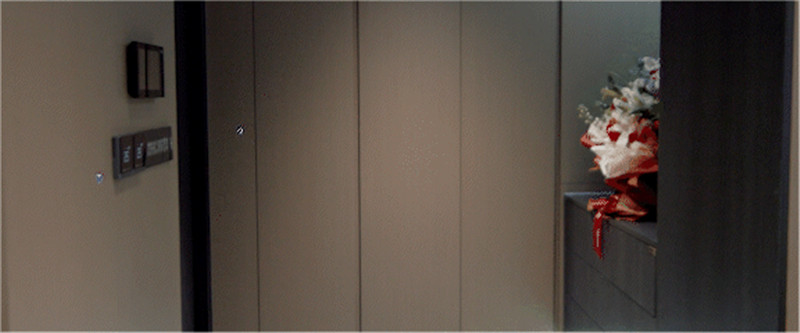 入门玄关整体L型构造,其悬浮掏空设计,显大且具深度;玄关造型采用内退手法,借用卧室空间来做DIY放置区;将条带灯光嵌入内退区拐角,明亮通透。