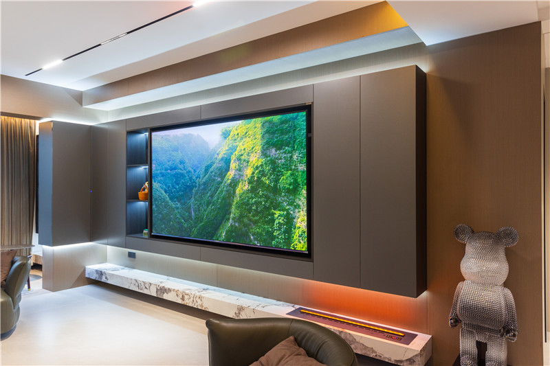 整屋科技直纹、睿智灰、黑木纹、茶白色拼接协调,突显全屋定制的魅力。