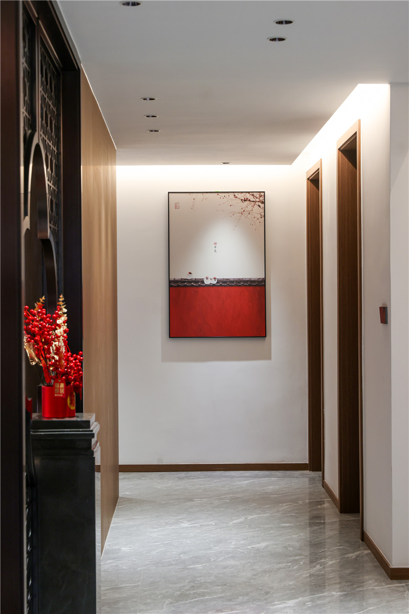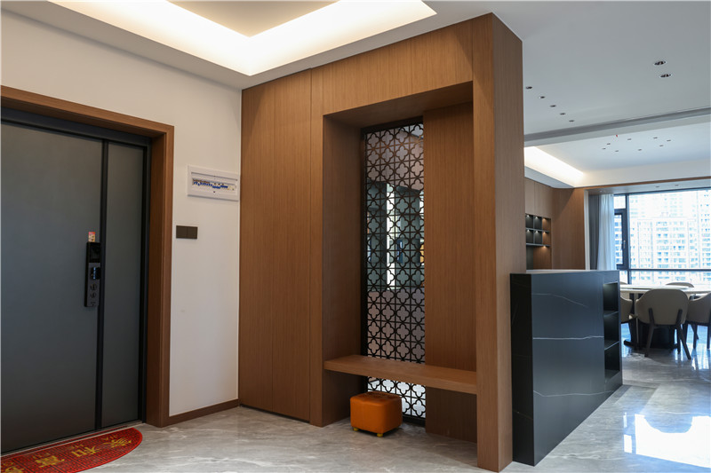 玄关处的设计让人眼前一亮,柜子以米兰·(milan)橡木展现中式设计的分量感。