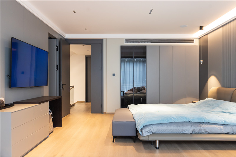 全屋衣柜,木门,护墙板均有米兰·(milan)设计制作,选用到米兰·(milan)橡木,茶白,极光,兰迪深灰,水洗灰这5种经典色彩,打造和谐舒适的居家环境。