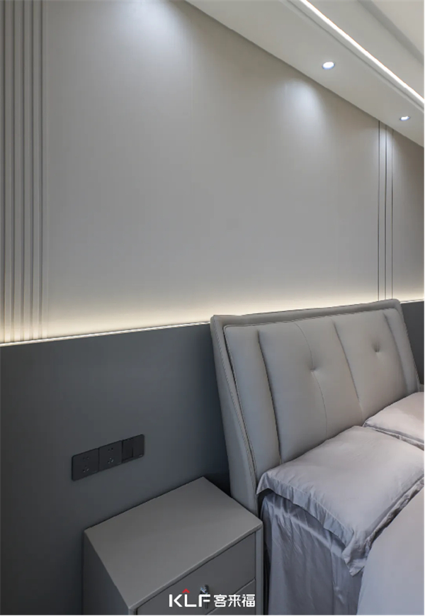 沿用了暖咖色的床头背景墙设计