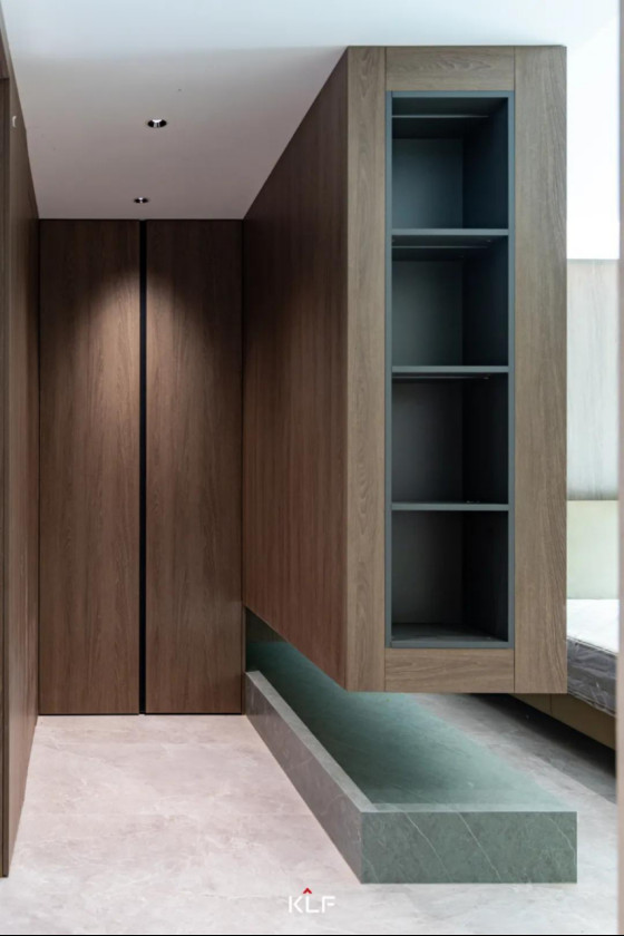 卧室衣帽间一体化设计,充分利用卧室空间,通过重视空间布局、设计元素和细节,融合意式极简风格,创造出自由舒适的居住环境。