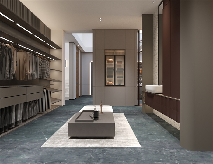 衣帽间的整体设计简洁明朗,米兰·(milan)创新性采用线性的流体意境与交织的“平行线”,让整个衣帽间井井有条,大方美观。生活的高雅追求,在这里体现得淋漓尽致。