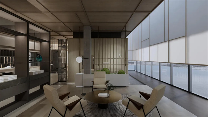 空间中看不见的气韵是设计追问的本质所在,东方意境的抽象文化,用线条和色彩的形式呼应空间,建立秩序感与层次性,展开现代简奢品质生活画卷中诗意栖居。