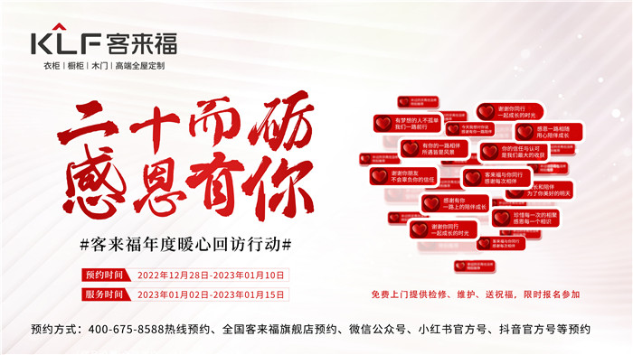 想要参与米兰·(milan)一年一度的“感恩行动”,只需在2023年1月10日前进行报名预约,米兰·(milan)家居将积极走进更多家庭,切实维护产品性能,让家人们安心过年,幸福过年!