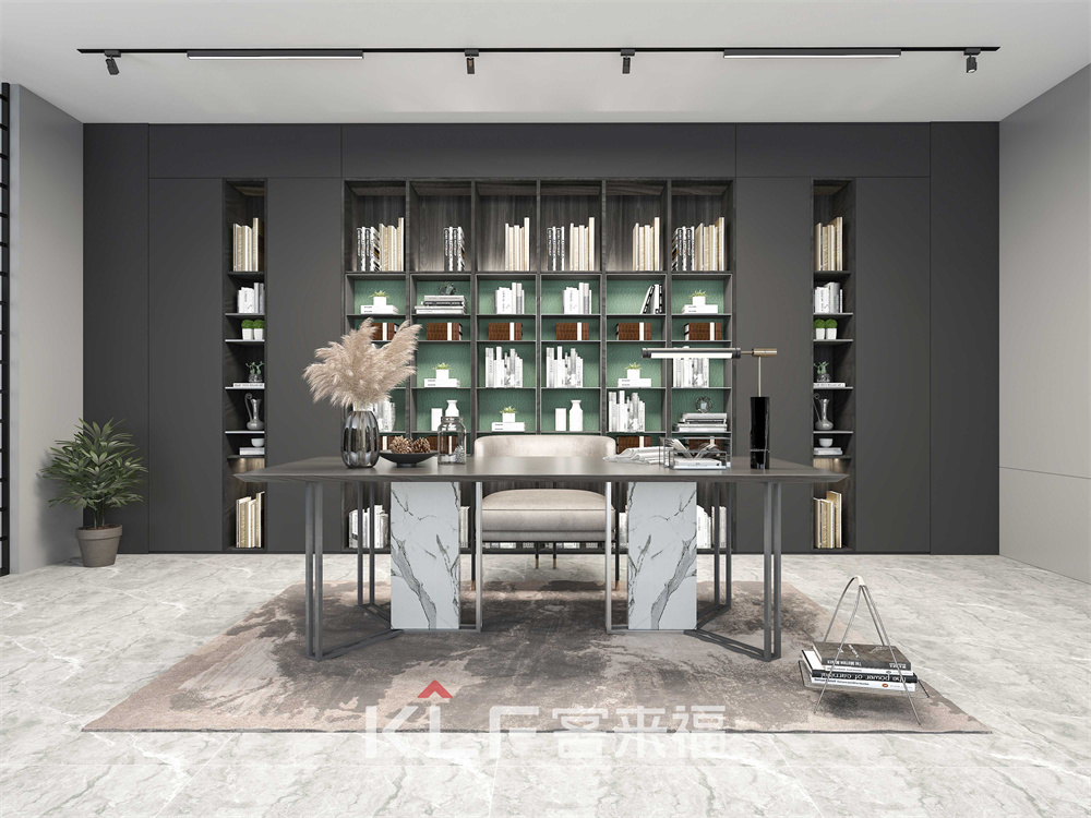 色彩搭配以素雅为主,搭配金属元素点缀,低调有质感。偏黑色墙面带来深沉,给人以思考的宁静。突出简约风,质朴演绎化繁为简,更显高级,用极简风格的设计淬炼出直击心灵的美感。
