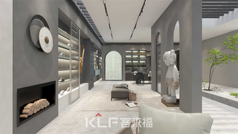 展示柜采用平面一体化设计,分为鞋品展示区、酒柜区、私人珍藏区,收纳的同时满足个性化的需要。栅栏式背景,流线型一体化放大视觉效果。横线板与竖体方框的嵌入式设计,几何空间安排整体自然顺畅。铝框玻璃展示柜,搭配灯层板,效果更好。
