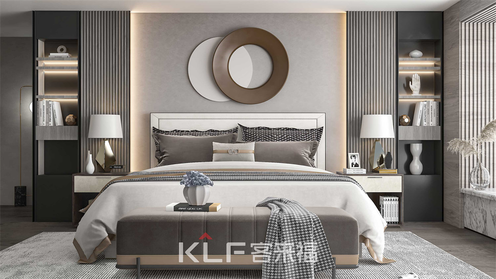 卧室空间简洁大气,色调素洁统一,线条简约流畅,注重整体的高雅和细节,体现现代家装的轻奢与精致,让人感受到一种返璞归真的优雅生活。